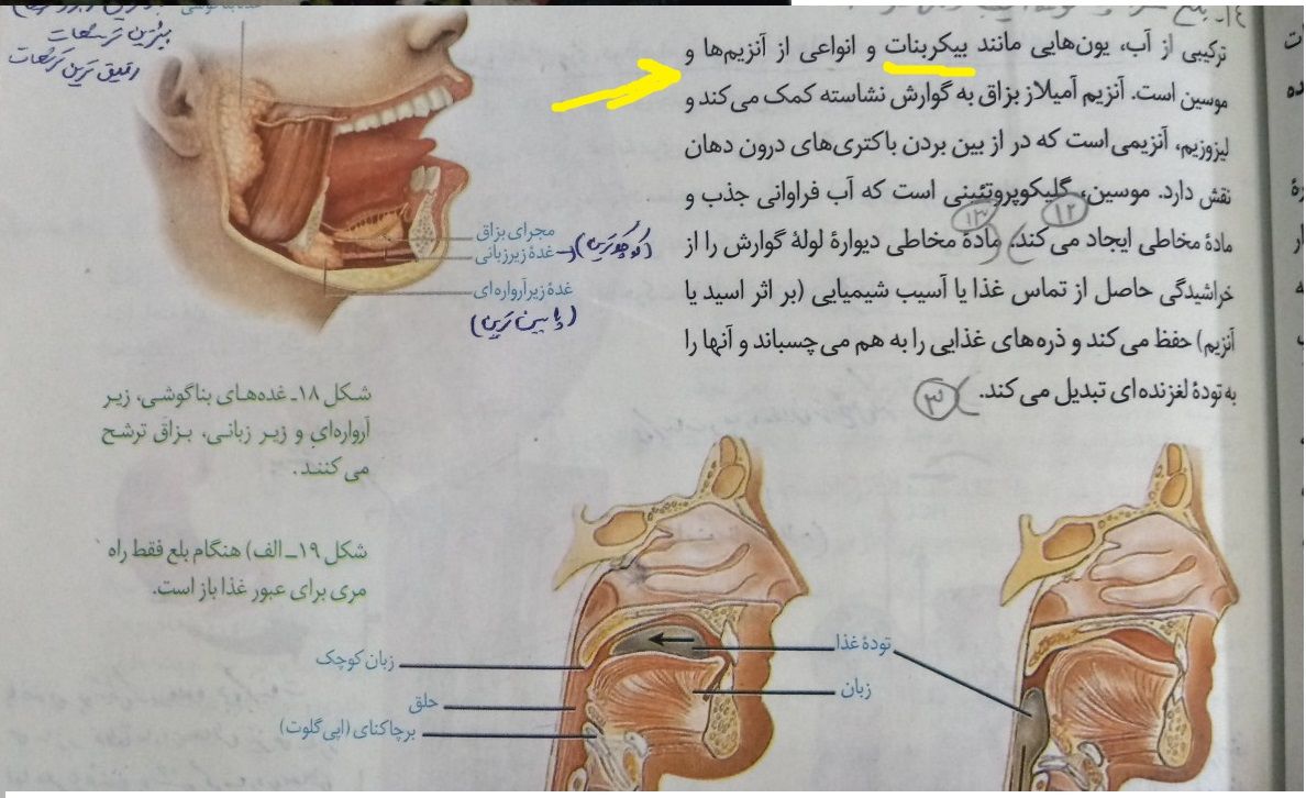 بزاق بیکربنات داره ؟ اگه داره کجای کتاب به این اشاره کرده که بزاق دارای بیکربنات است؟