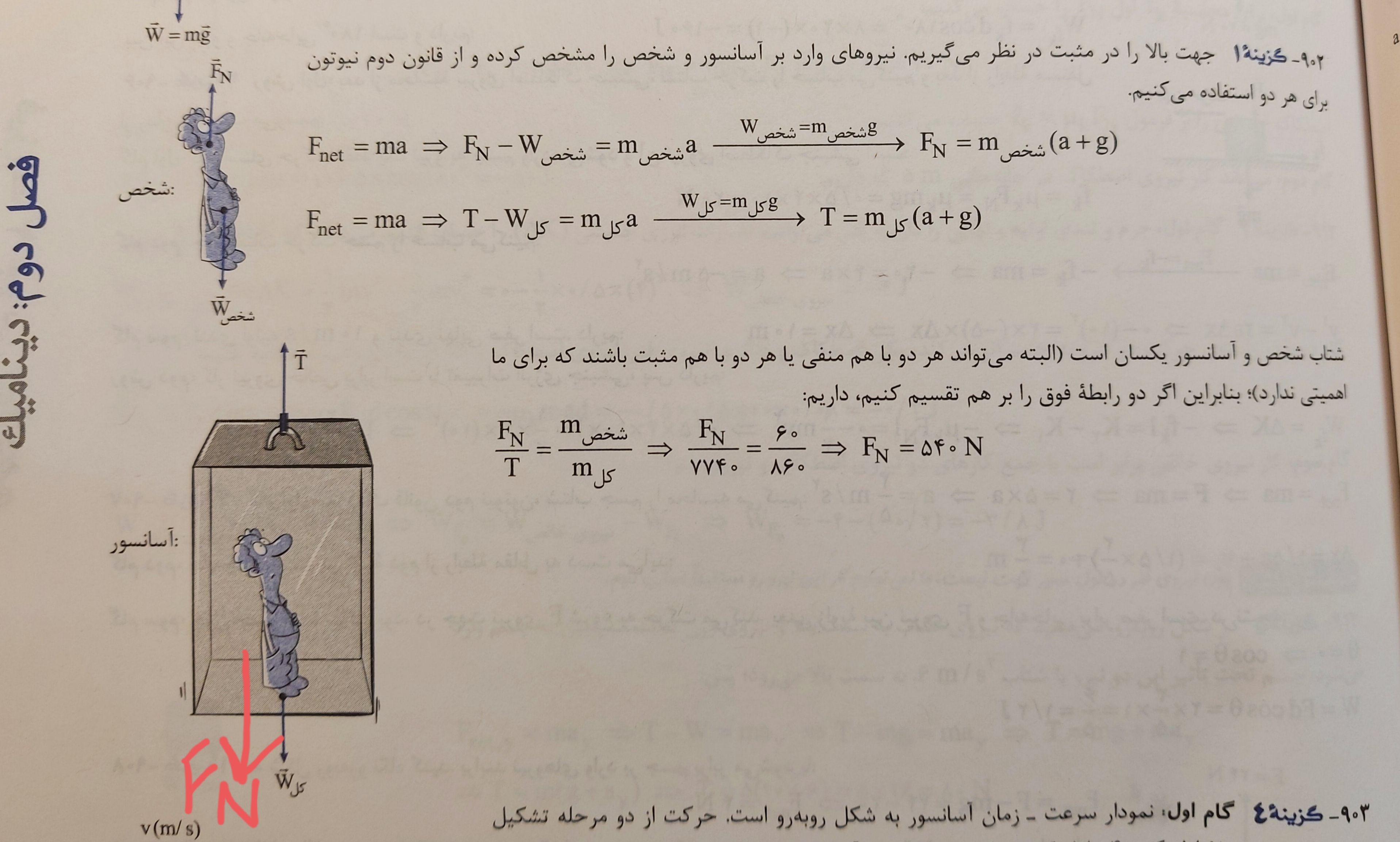 پاسخنامه باید مینوشت نیروهای " وزن آسانسور و N " به آسانسور وارد میشه رو به پایین -